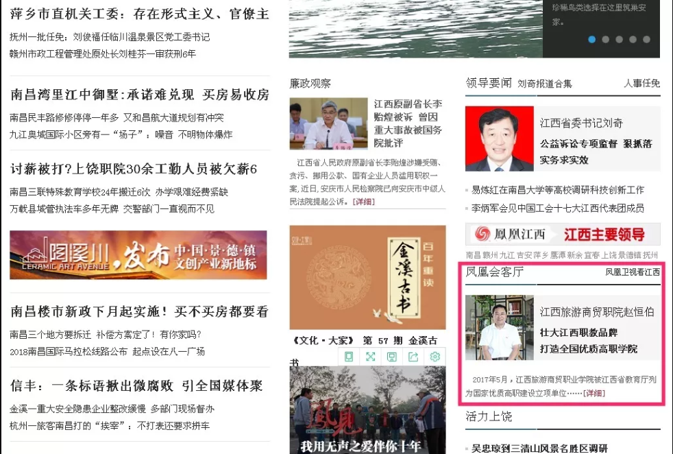 凤凰网江西频道首页推送赵恒伯书记访谈新闻