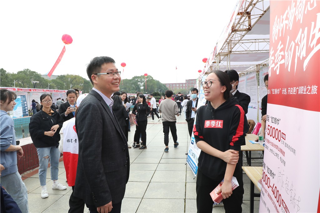 江西旅游商贸职业学院党委书记、集团常务副理事长吴小平,看望慰问招聘单位代表,详细了解用人需求和毕业生求职情况,与前来面试的毕业生们亲切交流,询问他们的就业意向和求职面试情况,鼓励毕业生们要抓住机遇,合理定位求职目标,积极投身于我省经济建设,为地方社会经济发展贡献自己的力量。