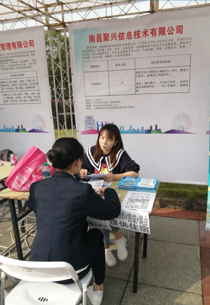 据悉,本次招聘会共引进江西赣消实业有限公司、江西金色田田圈贸易有限公司、江西美宜佳便利店有限公司、南昌众超电器有限公司、聚鑫科技有限公司、京东物流等集团企业,为江西旅游商贸职业学院、江西生物科技职业学院、江西商务学校2020届毕业生提供300余个就业岗位,涉及电商、市场营销、连锁、物流等多个专业。