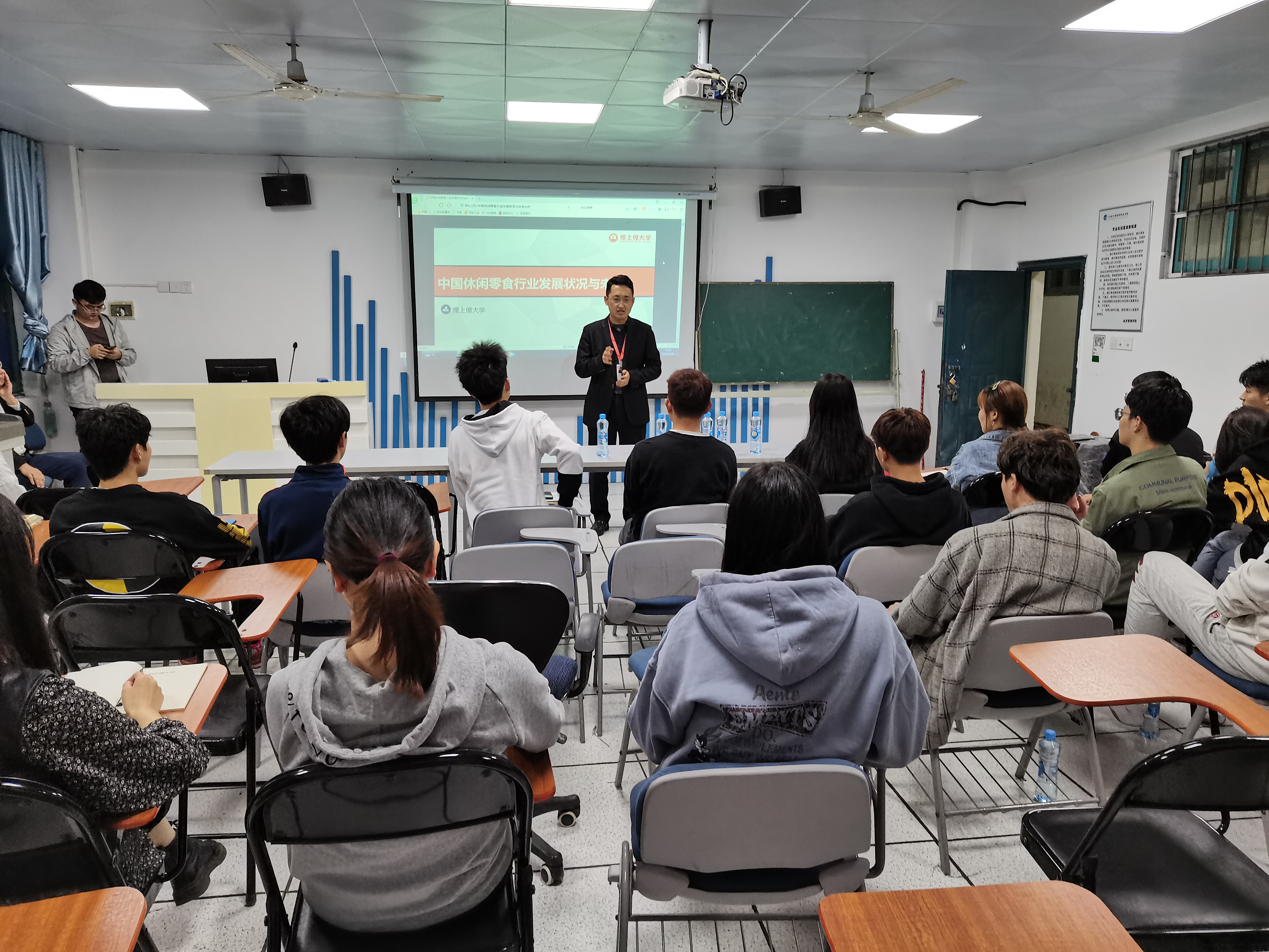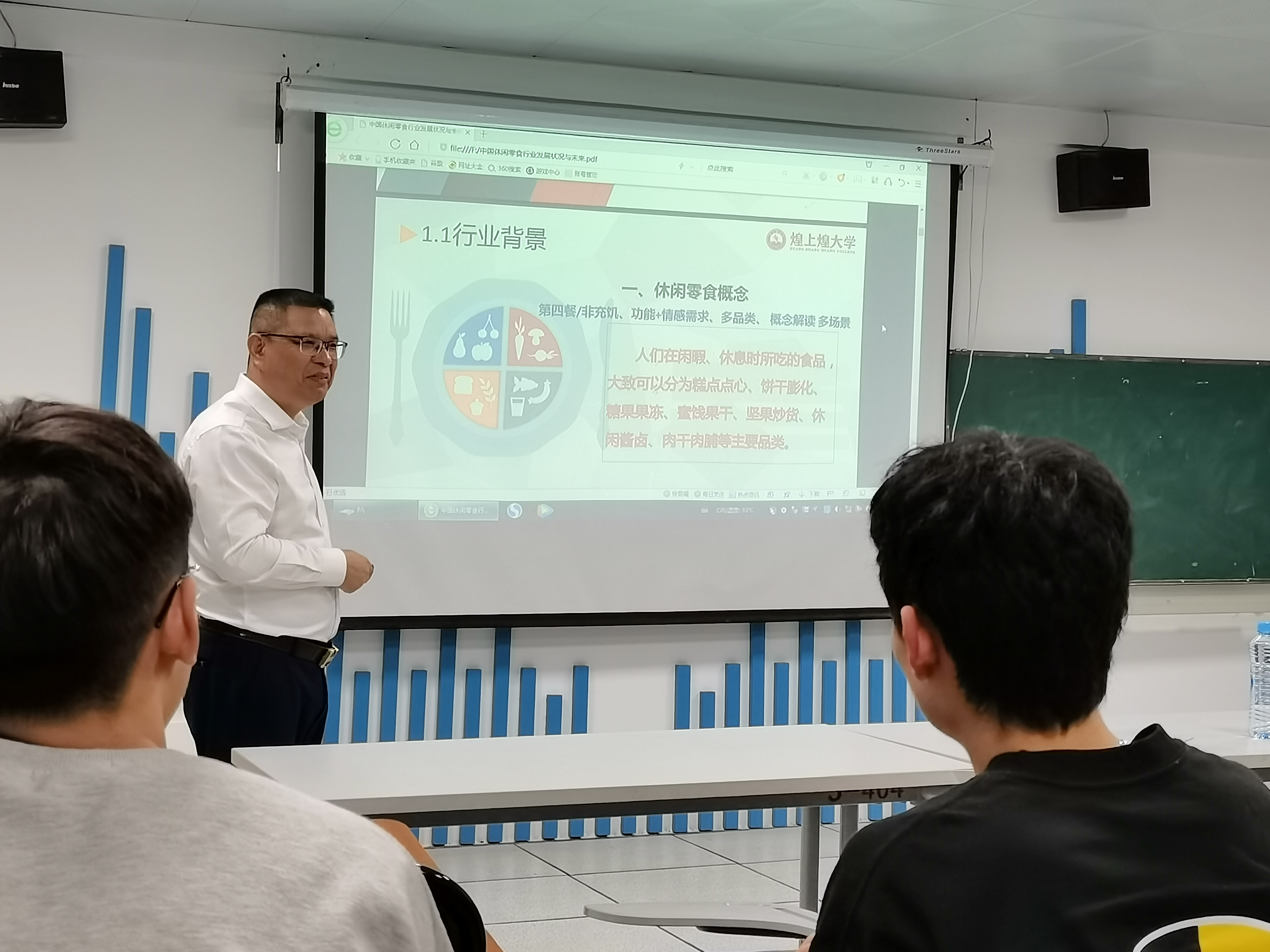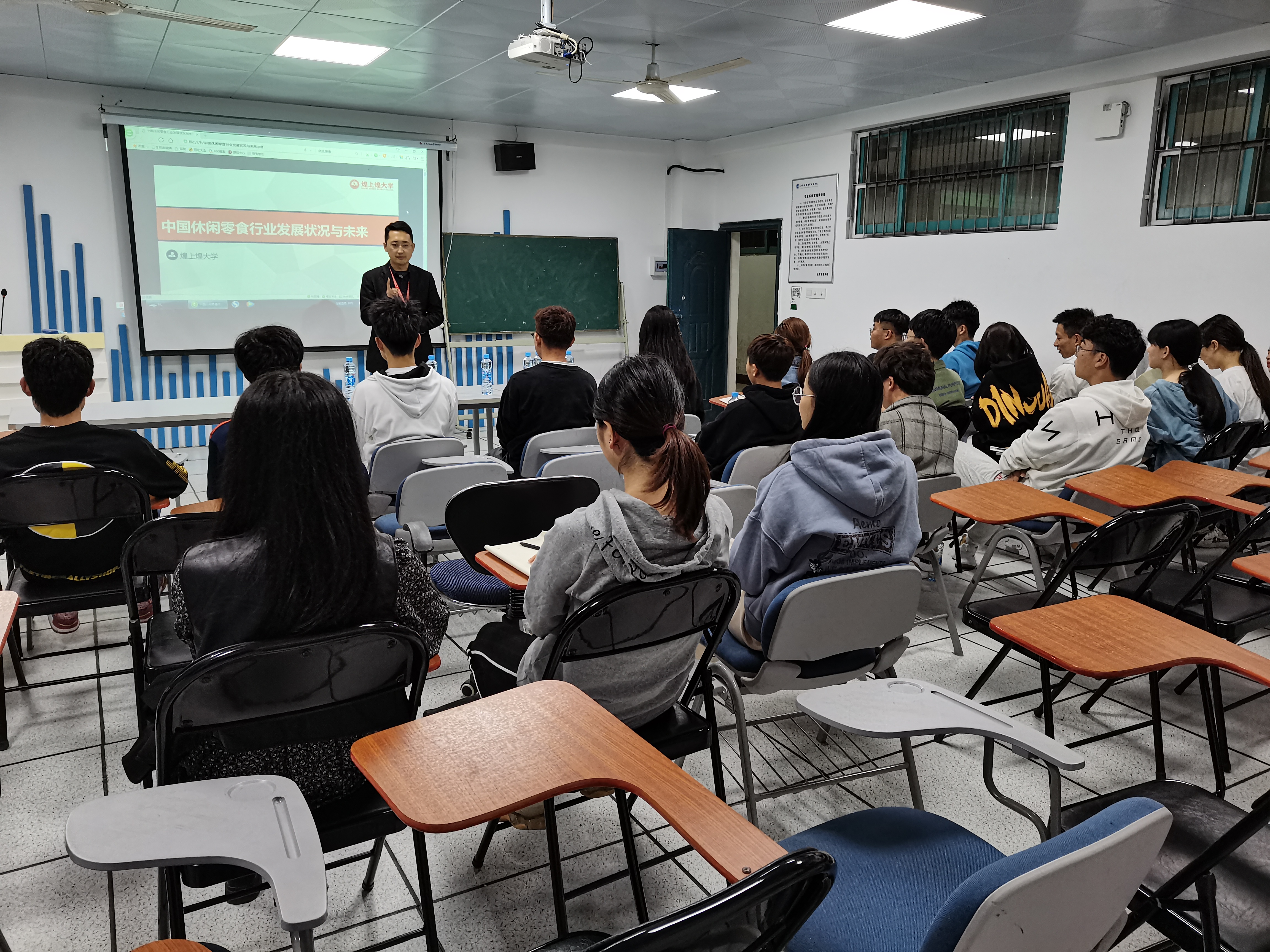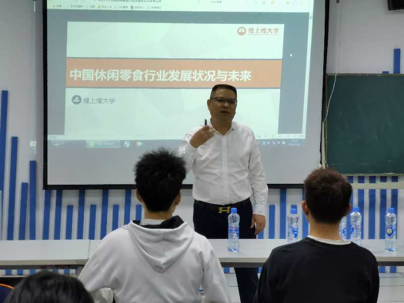 李总监给同学们通过自我的职场经历,分享成功心得,并通过提问互动的方式介绍煌上煌公司的发展经历、发展目标与未来发展的方向。在整个授课环节中,李军老师环环相扣、层层递进,让学生充分感知到了他人个对事业、对生活的热爱与激情。 李总监授课结束后由专家库成员煌上煌大学培训教学总监赵亮为学生总结授课知识点,并现场回答学生提问,给予学生职业规划指导。