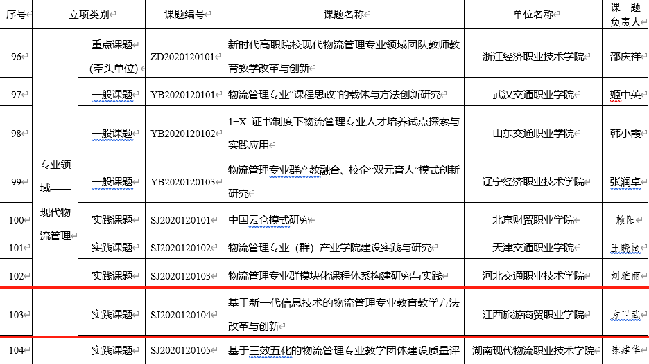 7月8日,教育部发布了《关于公布首批国家级职业教育教师教学创新团队课题研究项目的通知》。江西旅游商贸职业学院党委委员、副院长、集团供销智库专家方卫武主持的《基于新一代信息技术的物流管理专业教育教学方法改革与创新》(课题编号SJ2020120104)获现代物流管理专业领域实践课题立项,这是集团国家级职业教育教师教学创新团队在建设过程中取得的又一重大成果,体现了集团物流管理专业教学团队扎实的教学科研创新实力。