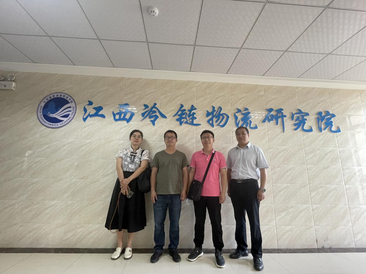 江西省商务学校教师在江西旅游商贸职业学院经济管理学院副院长傅俊与物流专业教师的陪同下,先后参观了江西冷链物流研究院与现代物流实训基地。在参观过程中,首先由江西冷链物流研究院执行院长邹建生详细介绍了研究院成立背景、建设成效、发展方向,并与江西省商务学校教师就冷链物流技术、物流信息化等话题展开深入交流。然后由江西旅游商贸职业学院经济管理学院物流与连锁教研室主任郭鹏详细介绍了学校物流专业的课程设置、实践教学以及就业情况等,并表示希望双方能在物流专业建设方面加强合作,共同提高物流专业人才培养质量。