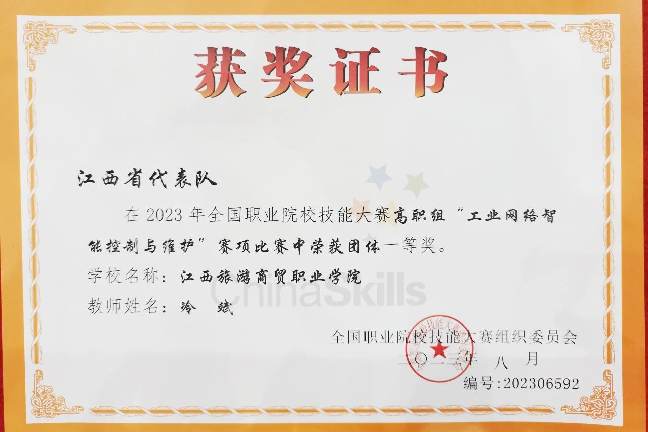 8月15日至16日,由教育部主办的全国职业院校技能大赛“工业网络智能控制与维护”赛项(教师组)在包头职院顺利举行。来自全国54所院校的54支教师参赛队伍同台切磋技艺,由江西旅游商贸职业学院领导杨福盛带队,参赛教师冷斌、胡伟两位老师,沉稳竞技,在该赛项荣获全国“一等奖”。这是继4月份全国行业大赛荣获一等奖后的又一次获奖的提升。为学校赢得了荣耀,为学校双高建设贡献了一份力量。