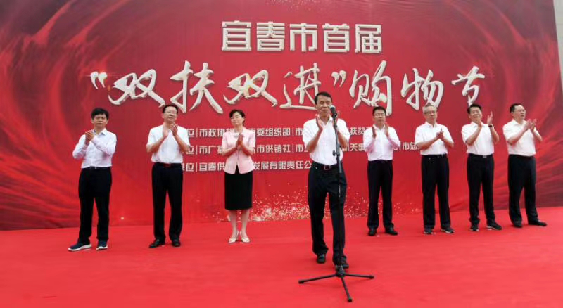 5月22日9时,宜春市首届“双扶双进”购物节开幕式在宜春文化艺术中心广场举行,宜春市委书记颜赣辉宣布首届“双扶双进”购物节开幕。