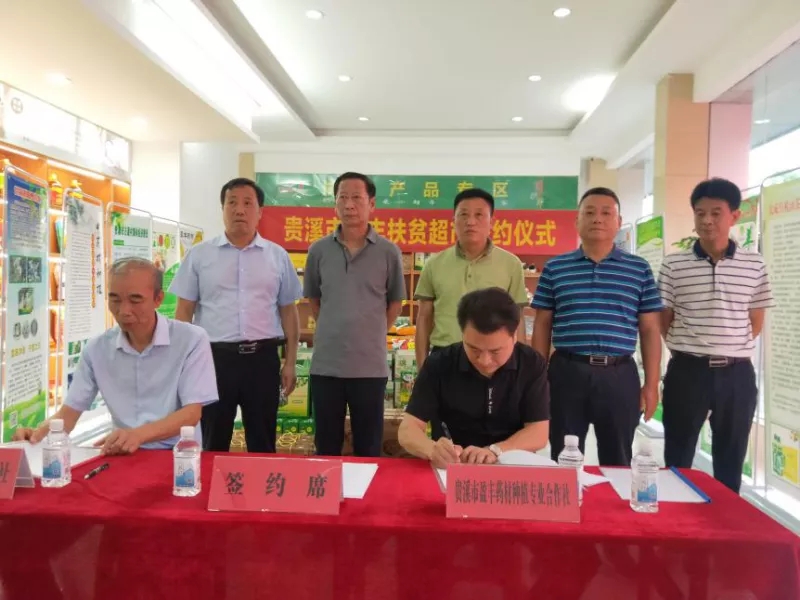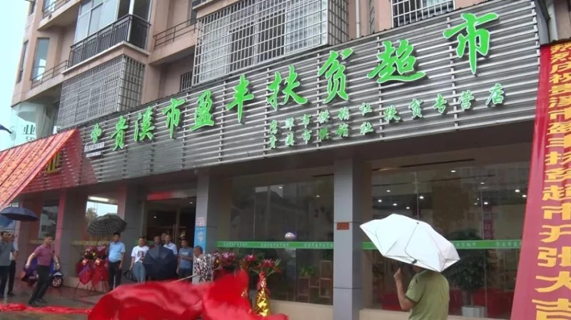 “贵溪盈丰扶贫超市”是鹰潭市供销合作社助力脱贫攻坚、抓好“培育壮大工程”成立的首家扶贫超市,是践行省委、市委关于产业扶贫和消费扶贫的有益尝试。该扶贫超市由鹰潭市供销合作社牵头推动,以拓宽扶贫农产品销售渠道为主要着力点,依托“电商+合作社+农产品+贫困户”模式,搭建扶贫农产品销售平台。揭牌仪式当天,已有12家合作社现场与超市签约,还有10家合作社即将签约。