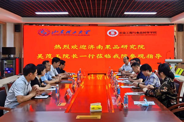 在山东理工大学农业工程与食品学院,执行院长李志合、副院长孙霞、泰山产业领军人才宋元达教授及李富军、郭业民、张新华等教师与吴茂玉一行进行了座谈交流,就共同推进研究生联合培养,共建山东食品科技学会、加强科研团队协同创新、开展中试设施的共享等达成了合作意向,商定在加强互访的基础上签署合作协议,明确目标,做出亮点。吴茂玉一行还参观了山东省蔬菜质量安全溯源工程技术研究中心等科研平台。