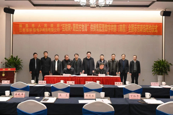 2月14日,省供销电商公司与瑞昌市人民政府举行“互联网+第四方物流”供销集配暨数字供销(瑞昌)全国示范项目签约仪式。瑞昌市委副书记、市长魏堂华,省供销联社经发处处长吕杭,九江市供销联社党组书记、理事会主任余立生,瑞昌市副市长汪新锋、幸成,省供销电商公司总经理金恩焘等出席签约仪式。