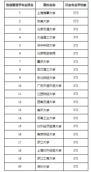 根据中国科教评价网发布的物流管理学专业大学排名显示,上海海事大学雄居第一位,东南大学排名第二位,北京交通大学排名第三位。
