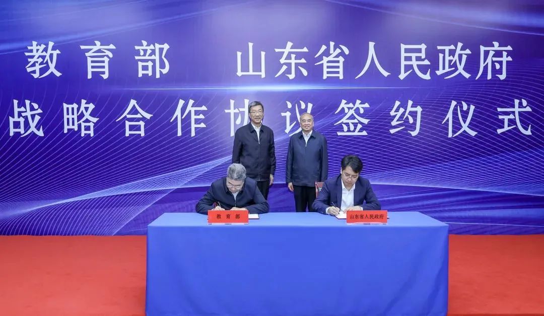 怀进鹏表示,山东全面贯彻党的二十大精神,认真落实习近平总书记重要指示要求,锚定“走在前、开新局”目标,坚持把教育摆在优先发展的战略位置,深刻理解教育、科技、人才共同支撑推进中国式现代化的重要意义,不断推动教育在改革中加强、在创新中发展,各级各类教育发展水平迈上新的台阶。教育部愿与山东以落实部省战略合作协议为契机,同题共答、同向同行,在推进现代职业教育体系建设改革中打造山东“亮丽名片”,在深化高等教育综合改革中支持山东先行先试,推动产教深度融合,强化校企深度合作,支持社会政策深度转型,大力培养与产业紧密对接的高水平技术人才和行业紧缺人才,全面提高人才自主培养质量,充分发挥教育服务国家战略和支撑区域经济社会发展的重要作用,使山东教育成为改革发展和对外合作的先锋和示范。